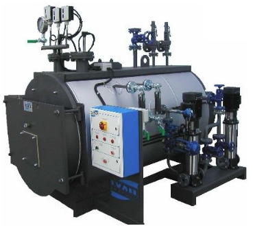 Паровой котел IVAR высокого давления модель BHP 500 (Италия) предназначен для производства пара с давлением до 12 или до 15 бар. Котел IVAR имеет двухходовую конструкцию камеры сгорания и может работать как с газовой так и с жидко-топливной горелкой. Реверсивная топка парового котла BHP500 оснащена термокомпенсатором, предназначенным для погашения тепловых расширений металла. Конструкция котла позволяет осуществлять чистку топки и дымогарных трубок от продуктов сгорания применяемого топлива.