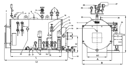 Регулируемый экономайзер с ручной и электрической заслонкой дымовых газов, арматурой, автоматикой, изоляцией и обшивкой, смонтирован на дымовой камере котла BHP 500. Включает группу модуляции питательный воды, защищающую экономайзер от перегрева.