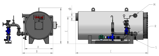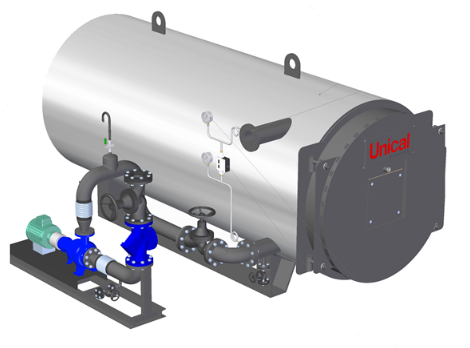 На паровых котлах UNICAL, поставляемых в Россию, устанавливается два питательных насоса. Один рабочий, второй резервный, в соответствии с ПБ 10-574-03 «Правила устройства и безопасной эксплуатации паровых и водогрейных котлов».