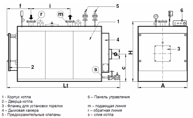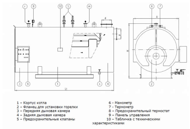 Стандартный комплект поставки жаротрубных котлов MODAL 105 включает в себя: